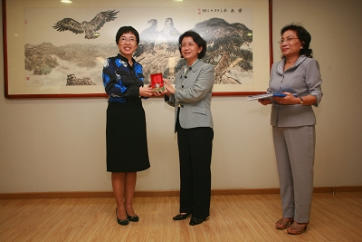 9月13日,柬埔寨妇女事务部部长英甘塔·黛薇一行4人在全国妇联国际部亚洲处副处级调研员赵欣及北京市妇联联络部副部长刘力的陪同下,来我区妇女儿童活动中心参观访问。 代表团首先参观了妇女儿童活动中心的功能教室,观摩了亲子教育活动。随后,区妇联副主席梅艳冬向来宾介绍了近5年来海淀区妇女发展项目的有关情况。英甘塔·黛薇感谢海淀区妇联的热情接待,并希望就妇女发展项目与我区有更多的交流合作。最后,代表团参观了妇女手工艺技能培训现场,并参观了巧娘工作坊。