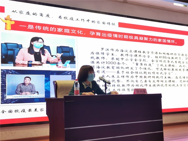 吴红蓉书记以“以党建引领建设温馨妇联大家庭”为主题,结合妇联工作实际,从家庭角度阐述了家庭在抗疫工作中所凸显出的重要作用;以妇联开展家庭工作为主线,回顾梳理了从新中国成立初期以来妇联推动家庭建设发展的历史;从发展的角度引领党员干部思考如何在党建引领下,充分发挥妇联职能,做好“联”字文章,建设好妇联自身大家庭。她指出,建设妇联“家”理念,一是个人要与集体荣辱与共,干部个人的发展离不开妇联大家庭的整体建设水平;二是和谐有向心力的妇联组织才能成为妇联人自己的“娘家”。