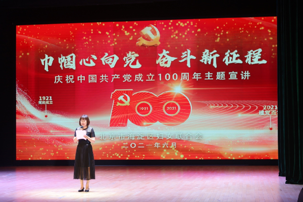 致敬百年征程,奋进再续华章。此次宣讲活动是海淀区妇联“巾帼心向党 奋斗新征程” 庆祝建党一百周系列活动之一,海淀女性们将继续拼搏奋斗,坚定不移听党话、跟党走,为加快建设现代化国际化创新型宜居宜业城区和北京国际科技创新中心核心区、建功“十四五”贡献巾帼力量。