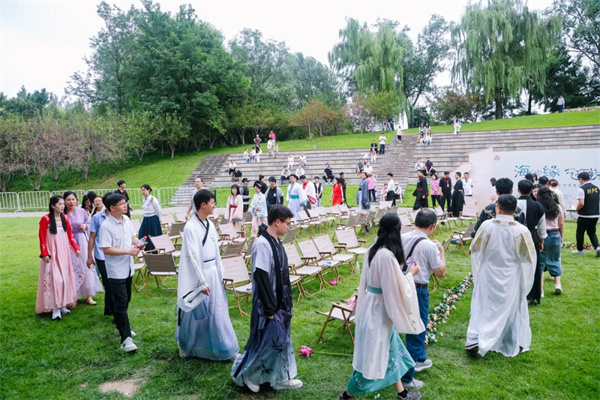 作为“海淀缘 乞巧悦”首场活动——“缘起鹊桥·园遇知音”传统文化主题联谊会以汉服体验、非遗展示等传统文化载体,打造了沉浸式古风联谊交友场景。