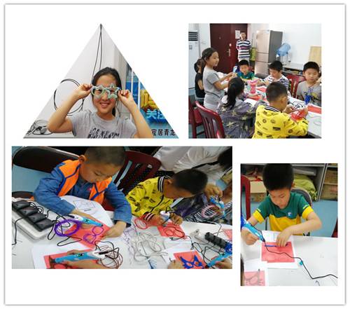 在场的孩子们纷纷感叹3D打印技术的神奇之处,现场气氛十分活跃。在老师的悉心指导下,孩子们经过短短三十分钟的练习后,就开始创作自己的作品了,此次的主题是用3D打印笔做出形式各异的眼镜,有的孩子做的圆框的眼镜,有的孩子做的是心型框的眼镜,有的孩子做的化妆舞会戴的眼镜……活动结束时,孩子们拿着自己创作的这份独一无二的3D打印作品,脸上洋溢着欢快的笑容。